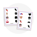 À travers les 5 fiches, l'’enfant doit associer chaque image à sa silhouette en reliant les bons éléments avec son crayon. Ce jeu développe la coordination œil-main, la discrimination visuelle et la préparation à l’écriture.